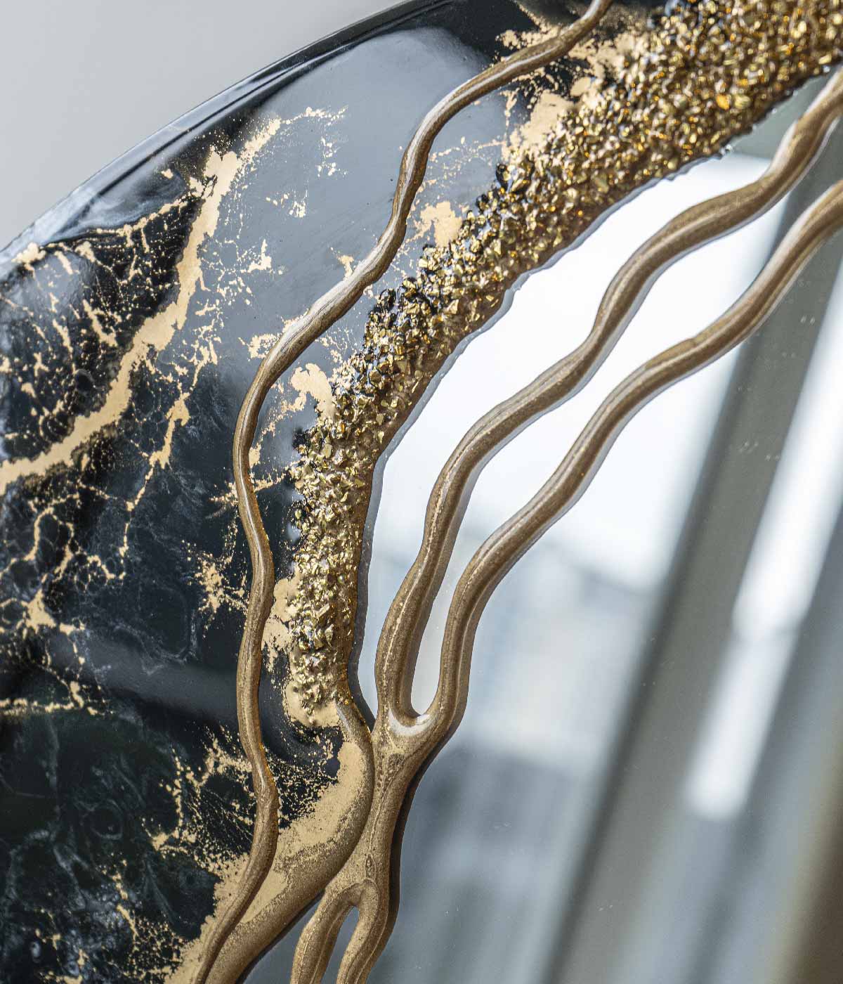 ESPEJO DIAMETRO 80CM GRETA BLACK GOLD AND SILVER