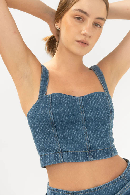 BOARDING TOP Diseñado con un toque minimalista y contemporáneo, este top de denim presenta tiras estratégicamente colocadas que crean líneas visuales elegantes y favorecedoras. Confeccionado en denim de calidad premium, combina durabilidad con un estilo versátil que trasciende las tendencias. Perfecto para crear looks sofisticados, desde casual refinado hasta propuestas más atrevidas. Una pieza esencial que eleva cualquier guardarropa con su simplicidad deliberada y presencia distintiva.