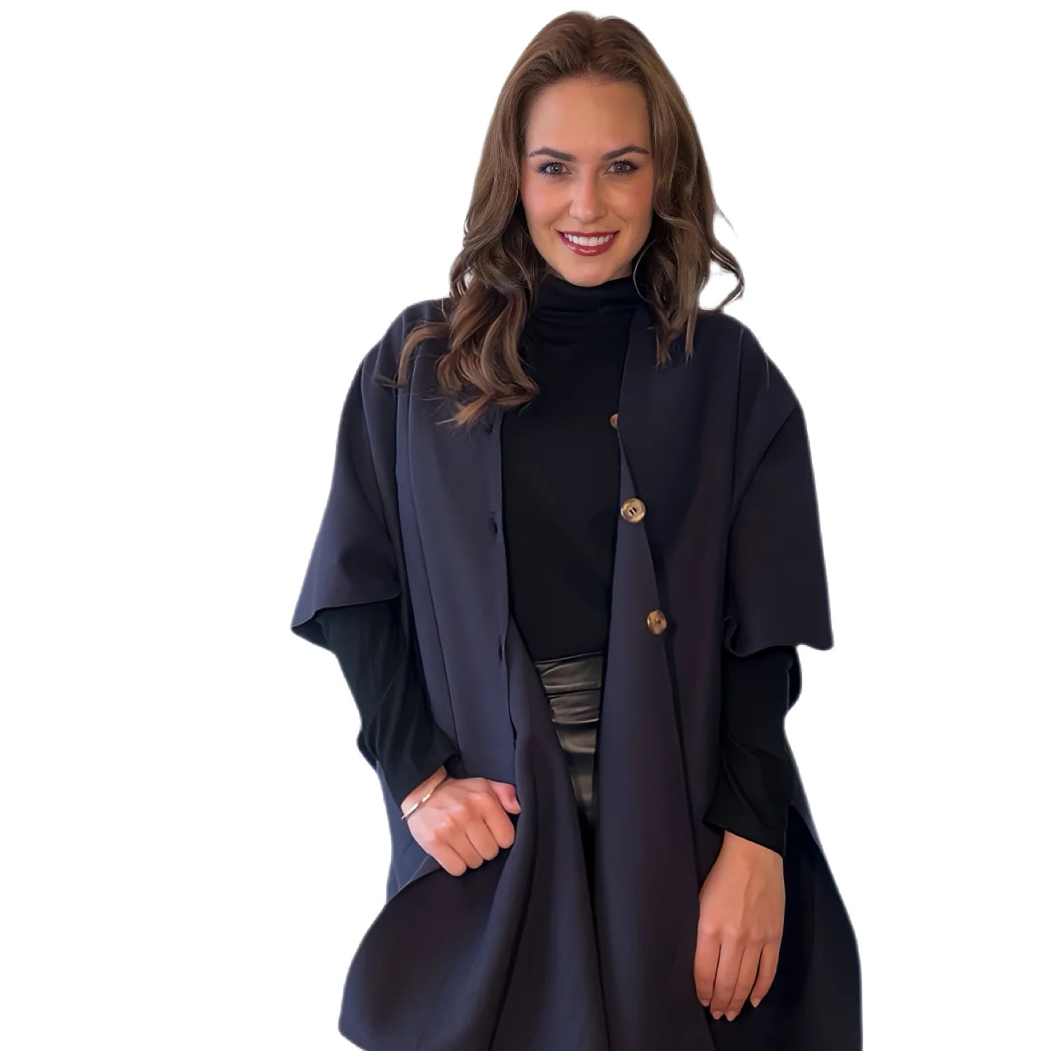 Elegancia y calidez en una sola prenda. Confeccionada en lana suave de alta calidad, esta capa de corte amplio y caída fluida es perfecta para los días fríos. Su diseño minimalista con detalles refinados la convierte en un básico sofisticado para cualquier ocasión. -Hecho en Colombia -Consiguelo en Galeria Sonoro.